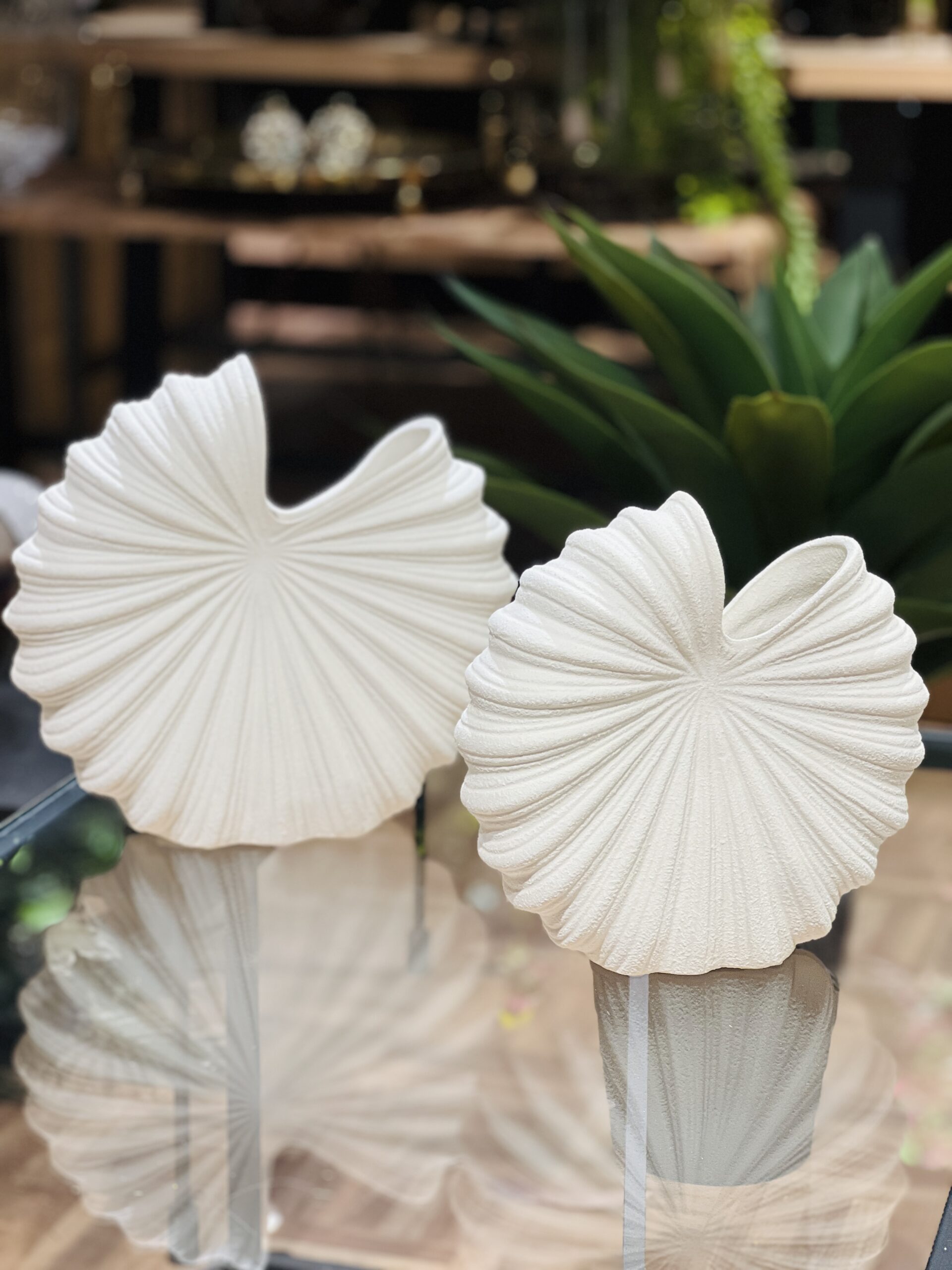 אגרטל צדף בעיצוב ייחודי בהשראת קווי צדפה טבעיים, עם טקסטורה עדינה ותנועה רכה שמוסיפה עומק ועניין לכל חלל.