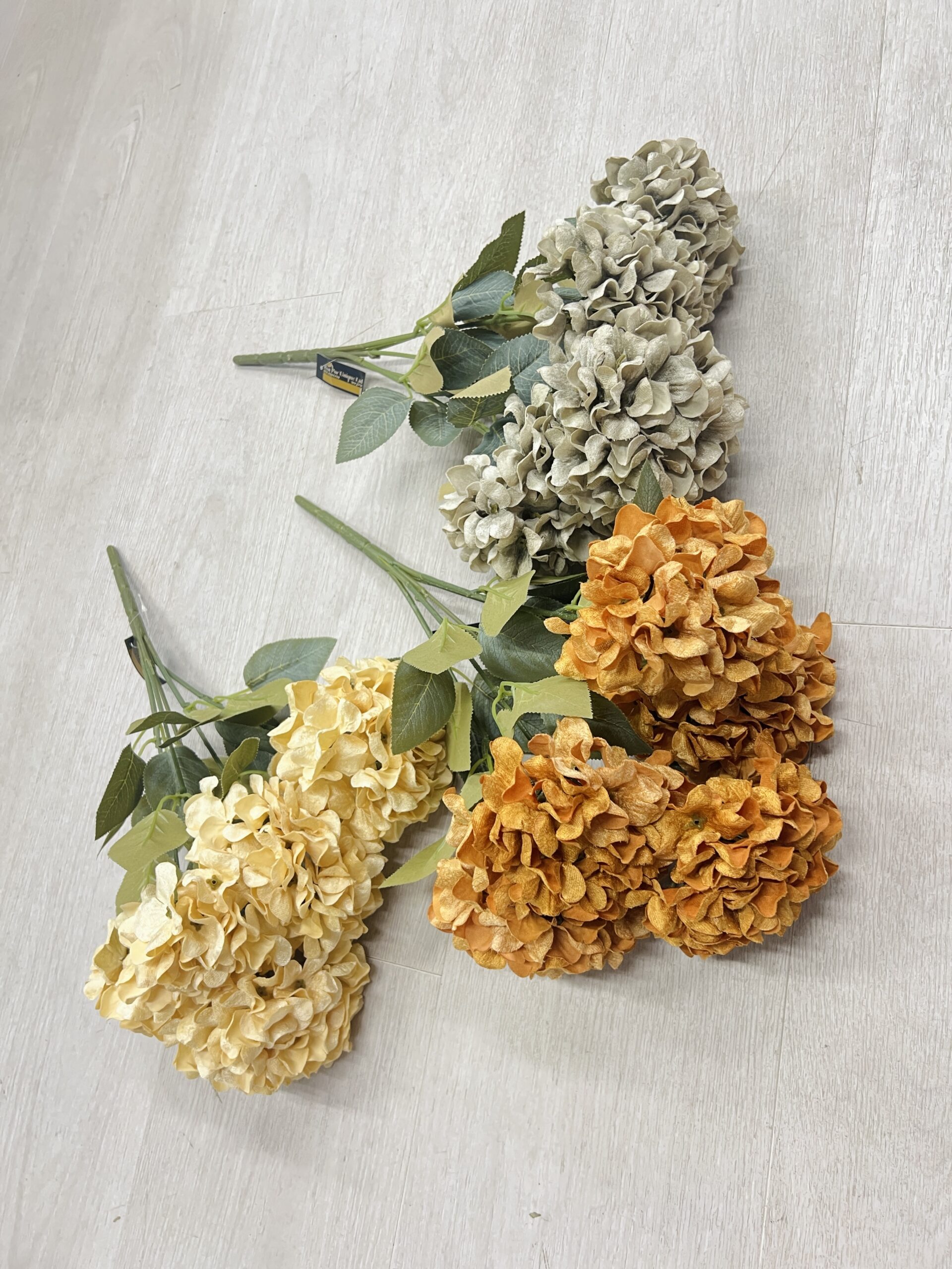 בוקט הורטנזיה קטיפתי 5 ראשים מקולקציית הקטיפה שלנו. קיים בשלושה צבעים – אפור כתום ושמנת.